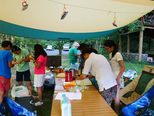 その後は全員協力のもと夕食の「カレーライス」作り。そして1日の締めくくりは、子供たち、スタッフ全員での自己紹介タイムとなりました。