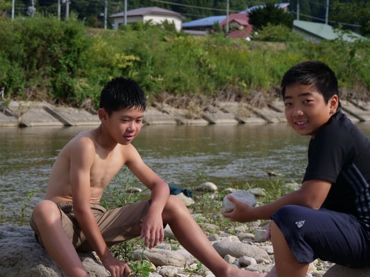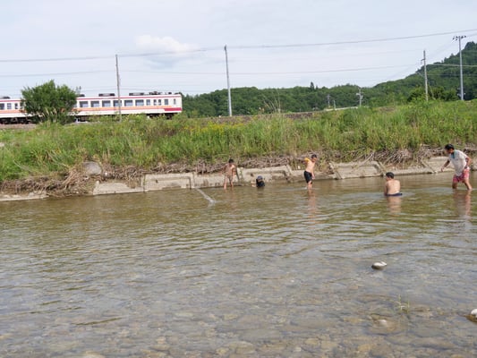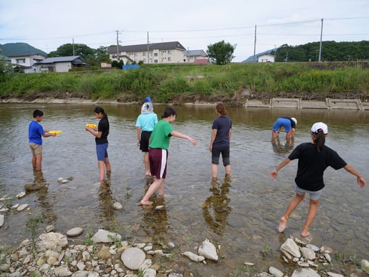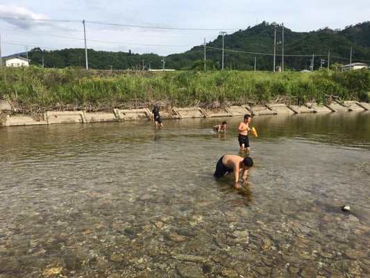 その後は昼食を兼ねて、近くの河原へ。昼食を済ませると、いざ川へ。水を見るとどうしても泳ぎたくなるようで、やはり男性陣は次々に飛び込んで行きました。