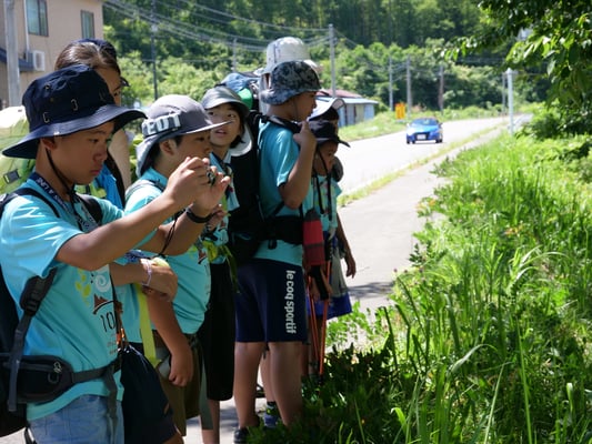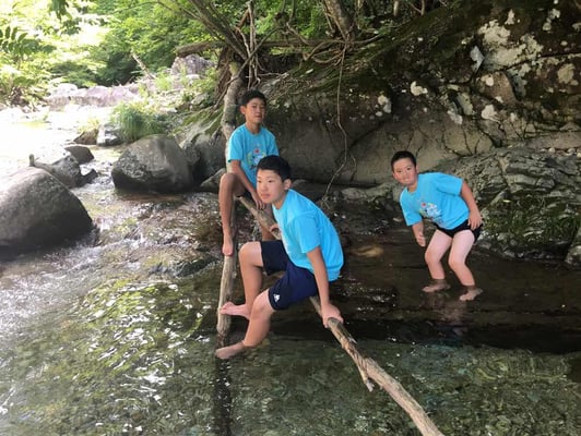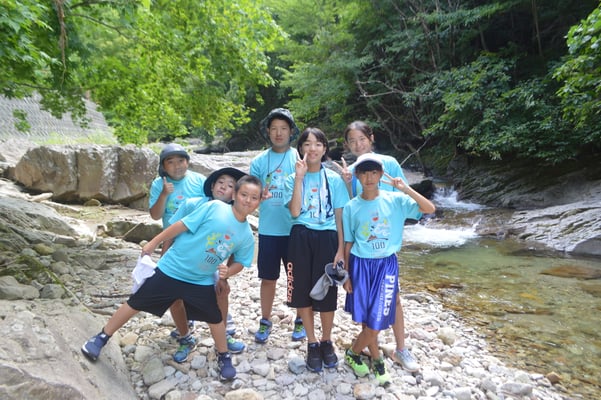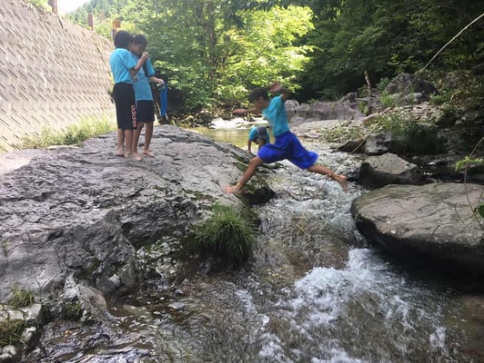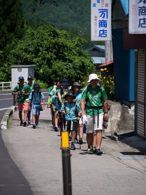 昼食後は気温も高くなったことから、ちょっと寄り道。川遊びでしばしクールダウンし、その後の徒歩行に備えます。そして、しばらくしたところで...