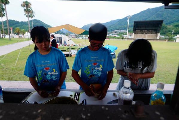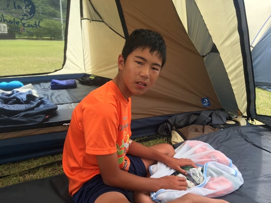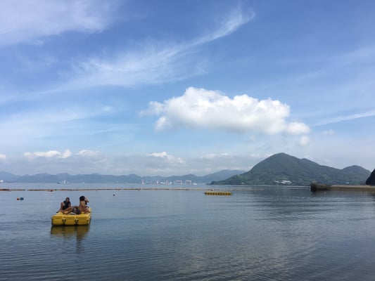 瀬戸内海の島で迎える2日目の朝は、休養日ということもあり少しゆったりとしたものに。昨日残した6kmの徒歩行はありますが、基本的にはいつもの休養日同様、何もすることは決めていません。前日に体調を崩したメンバーも回復はしている様子でしたが、この後も暑さが続く予報も出ているため、病院で診てもらうことにしました。その間他のメンバーやスタッフたちは、完全なフリータイムに。キャンプ場が「サンセットビーチ」と言うだけあって、目の前は海。やはり殆どが海水浴を楽しんだようです。