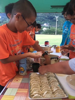 夕食はこれまた恒例の「皮から作る餃子」を全員で調理。明日は民宿泊のため、自炊では最後の夕食となりましたが、皆んな大満足でした。