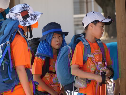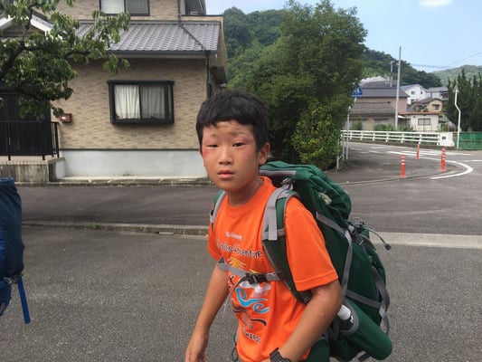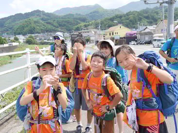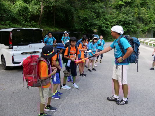前日に本格的な徒歩行をスタートさせたメンバー達。そんな疲れも見せず、起床時刻の6時には全員元気に起きて来ました。宿泊先の「えひめ青少年ふれあいセンター」の皆さんのご厚意により、センターの規定よりも30分早い、8時には活動開始出来るよう朝の予定を組んでいただきました。