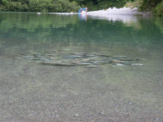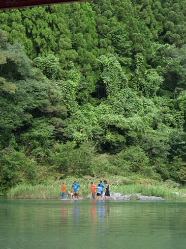 第2ルート最大の目玉である「仁淀川」。「仁淀ブルー」とも称される美しく、そして青い川に、7日目にして終に到着しました。この川で遊ぶこと、それが第2ルート全員が楽しみにしていたことです。