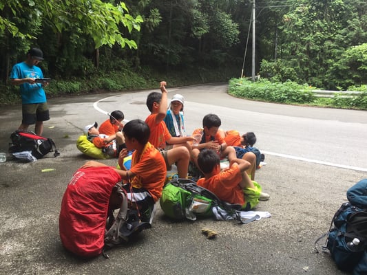 残りの行程は昨日の切り上げ分も含めて、あと8km。今の彼らの力では、苦にするような距離ではありません。15時過ぎ、本日の宿泊地である「仁淀川ふれあい公園キャンプ場」に到着しました。