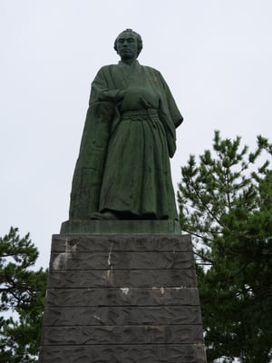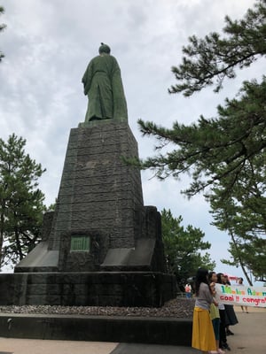 既に10日間、約160kmを移動して来たメンバーたちに、最終日の距離は容易いものでした。数回の休憩を取りながら、12時30分、全員揃って「坂本龍馬像」に姿を見せました。そのまま出迎えのご家族の方々も一緒となって浜へ降り、無事第2ルートのゴールとなりました。