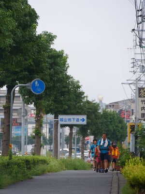 最終日のルート設定はゴール、解散の時間を考慮していつも短め。今回も約14kmの行程予定で、昼過ぎには到着出来る見込みです。これまでずっと四国の山間を縫うように、仁淀川に沿うように歩いて来た一行。最終日はこれまでとは一変して街中を進み、一路ゴールの「桂浜」を目指します。