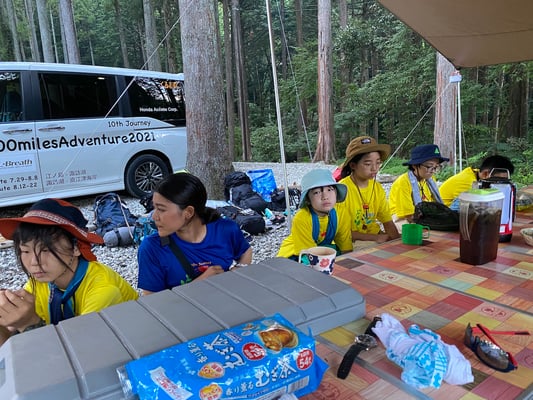本日の行程は昨年の初日も利用した「小田原市いこいの森RECAMPおだわら」までの26.6km。開始2日目から、第1ルートの中で2番目に長い距離を踏破することとなります。いきなりの本格的な徒歩行に備え、しっかり朝食をとり、森永製菓さんからご協力いただいた行動食を準備し、出発しました。