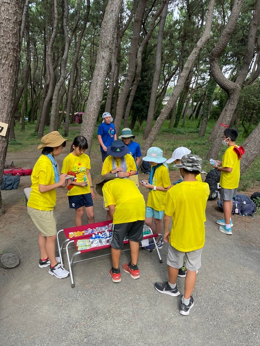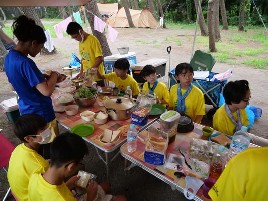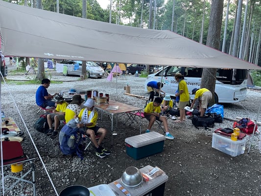 前日の消灯時間にはすっかり静かになったメンバーたち。ゆっくり休めたようで、6時には全員起きて来ました。いち早くテント内を片付け、出発準備を済ませる女子チーム。対してマイペースに準備をする男子チーム。早くもそれぞれの特徴が現れています。