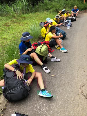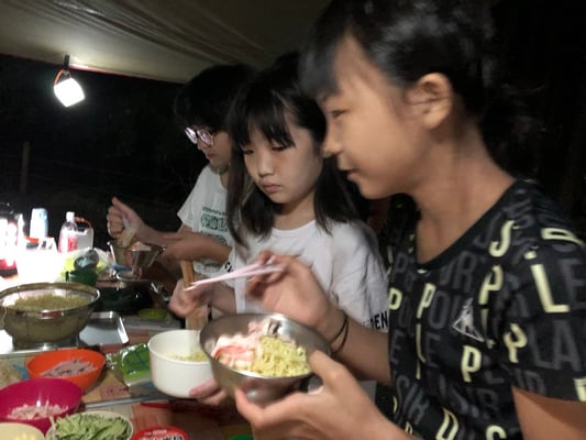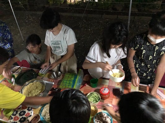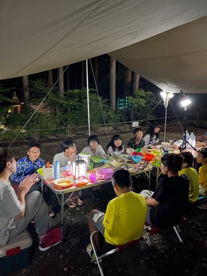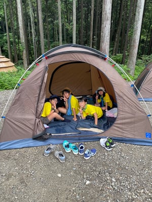 2日目の道中では幸いにも降られることはありませんでしたが、日付が変わる頃から雷鳴を轟かせ、本降りの雨になりました。慣れないテント泊でこの豪雨では不安だっただろうと心配しましたが、どうやら皆んなしっかりと休めたようでした。