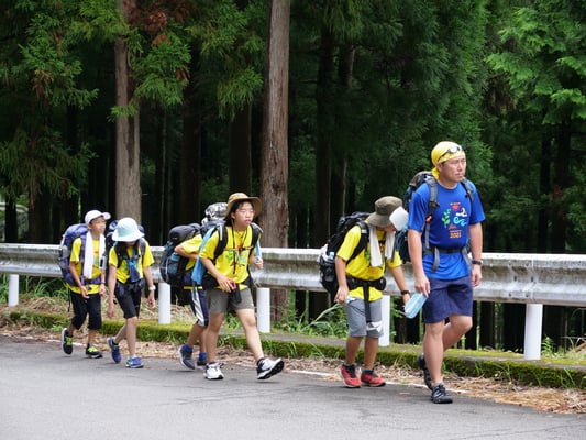 ひとしきり川遊びを楽しんだ後は、徒歩行再開。再度現れた登り坂に苦戦しながらも、18時に本日の目的地である「 乙女森林公園第1キャンプ場」に到着しました。