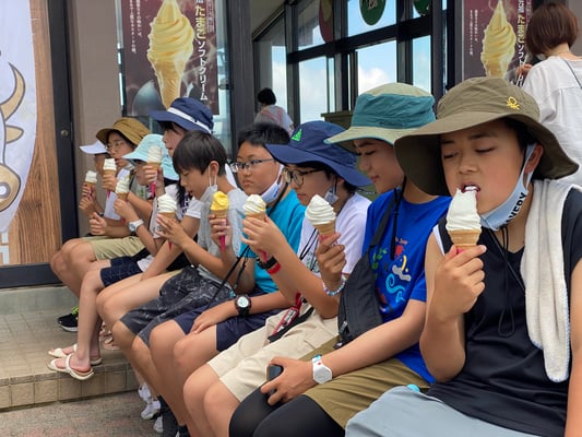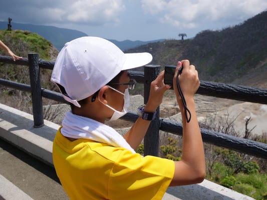 まず訪れたのは「大涌谷」。硫黄の匂いに迎えられた一行は、珍しい光景にシャッターを夢中に切っていました。その後「観光地に来たからには」と言うことで、これまで3日間頑張って来たご褒美も兼ねて、ソフトクリームを楽しみました。