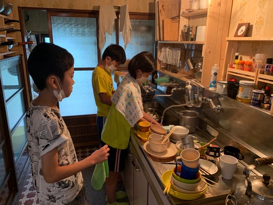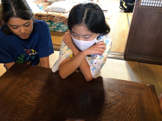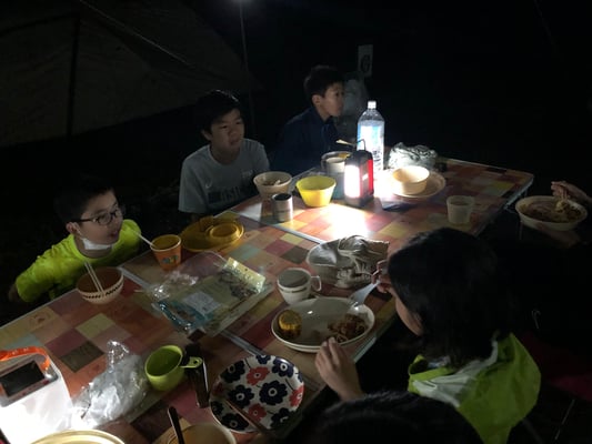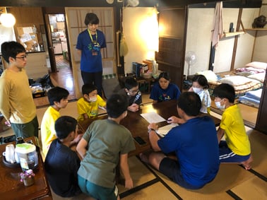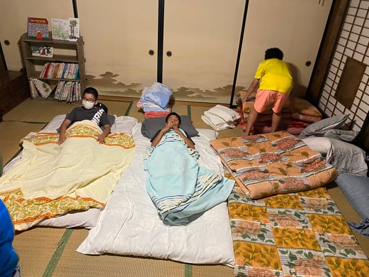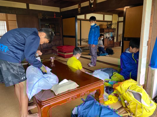 徒歩行を中止し、急遽おみやどさんにお世話になった3日目。久しぶりの室内、久しぶりの布団でゆっくり休んだかと思いきや、それでも寝袋で寝た男子もいたようで…。