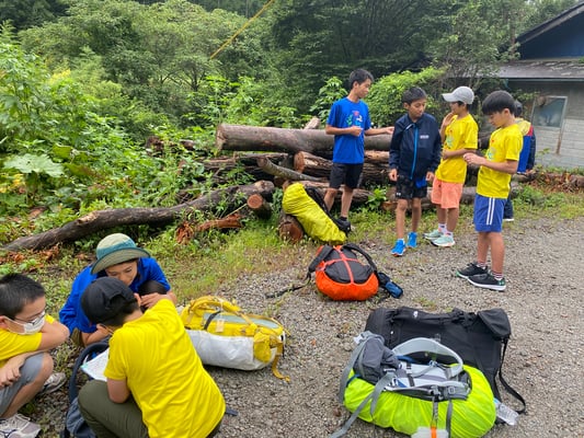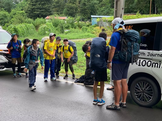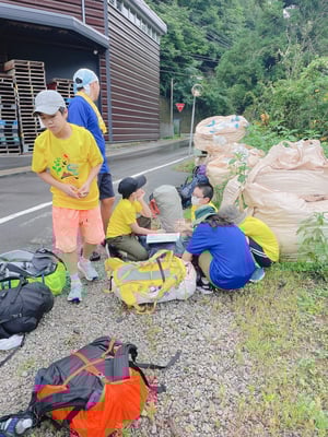 昼食休憩や小休止を挟みつつ、17時半に菅平高原の少し手前、唐沢の滝付近でこの日の進行を終了しました。距離にして約18km。上り坂の続くルートを、メンバー揃って歩き切りました。