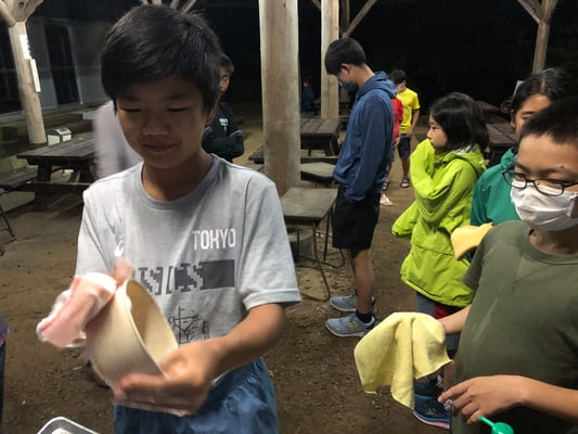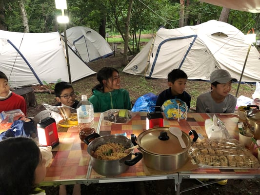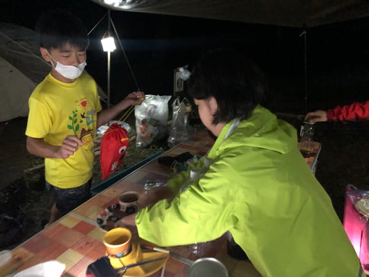 今晩の宿泊地は、前日と同じく「上田市市民の森キャンプ場」に。夕食には正真正銘本家本元の「悪魔のおにぎり」をいただきました。これまでで最長の距離を歩いたメンバー達ですが、まだまだ元気。テントに戻ってもしばらくは賑やかな声が聞こえて来ていましたが、22時前にはすっかり静かになりました。