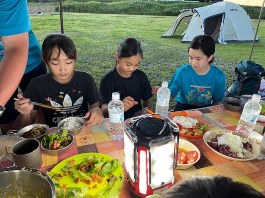 明日2日目は移動距離18.5kmを予定しています。100milesAdventureの日平均からすると少々短い距離ですが、初日の3倍です。最高気温も33度と高めの予報が出ていますので、万全の対策をし、次のキャンプ地を目指します。