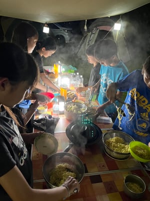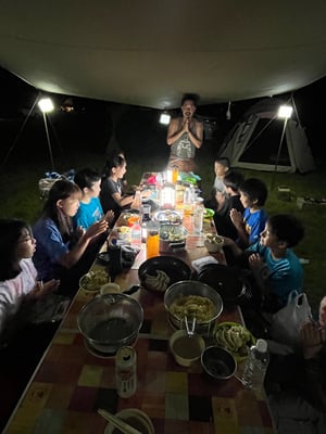 天の川が見られるほどの、満天の星空のもと就寝した昨晩。初日から何度も通り雨に降られて来ましたが、「さすがに今夜は降ることはないだろう」と誰もが思っていました。ところが午前4時頃にかなりの雨音で目を覚ますことに。予定通り5時半の起床には全員が揃いましたが、今日も通り雨との戦いになるのかと、不安を抱えたままのスタートとなりました。
