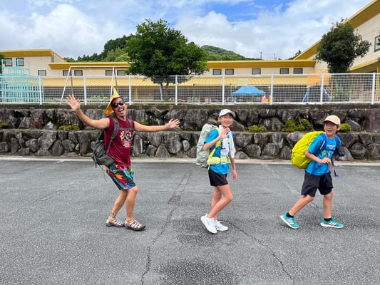 本日の行程は次のキャンプ地「オフロードランドMio」までの24.3km。開始3日目にして、第1ルート最長距離に挑むこととなります。出発前には一晩お世話になった勢山荘の管理人さんに応援とお見送りをいただきました。この模様は勢山荘さんのSNSにもアップされる予定とのことですので、お楽しみに!