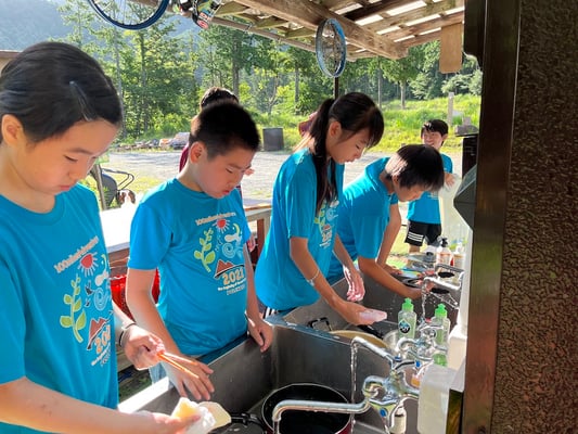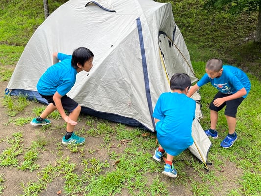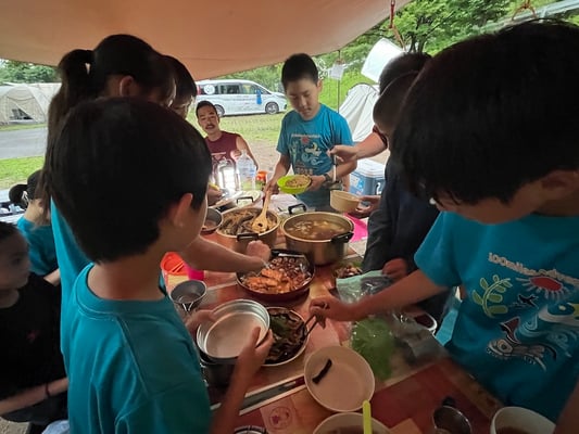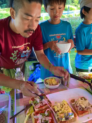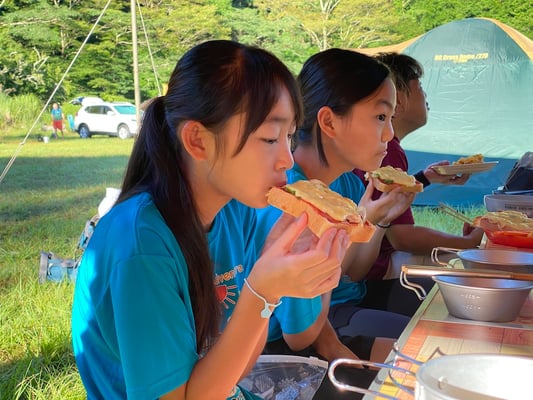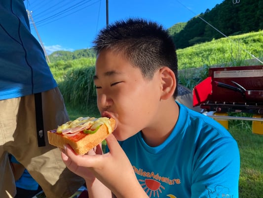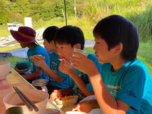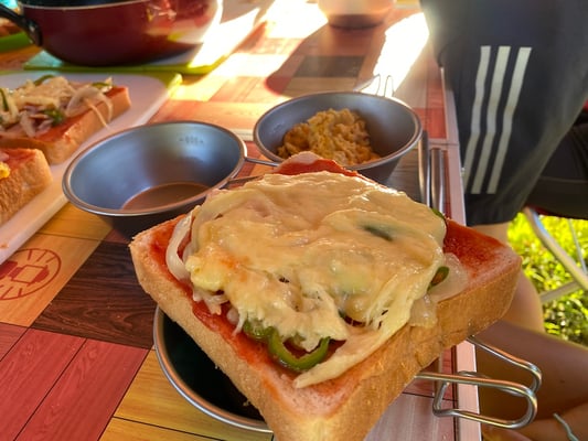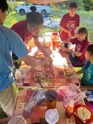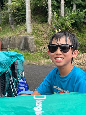 この旅初めて、雨の無い一夜を過ごした朝。メンバーもスタッフも何の不安もなく眠れたようで、起床時間の5時30分には全員が顔を揃えました。朝食前から身支度を済ませ、テントを片付けるメンバーたち。大ちゃん特製・ピザトーストをいただき、出発準備万端です。