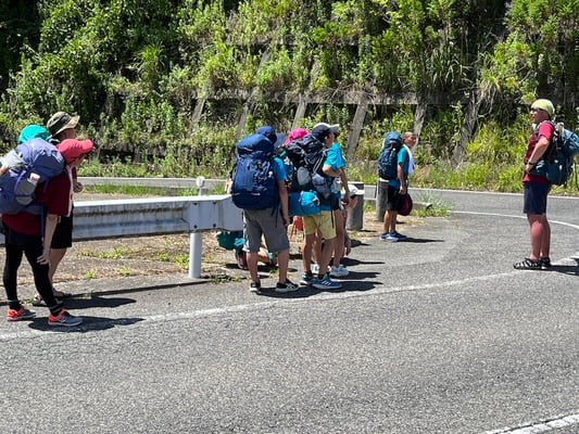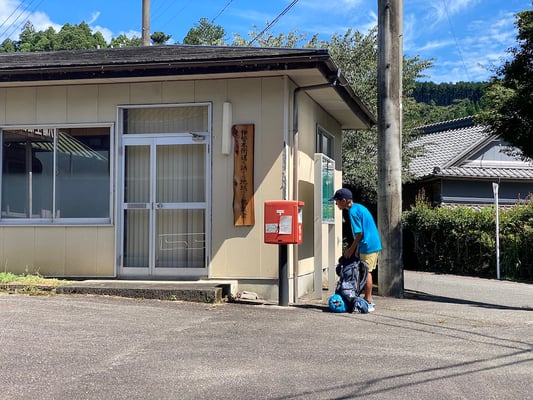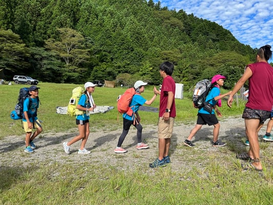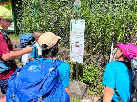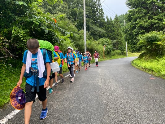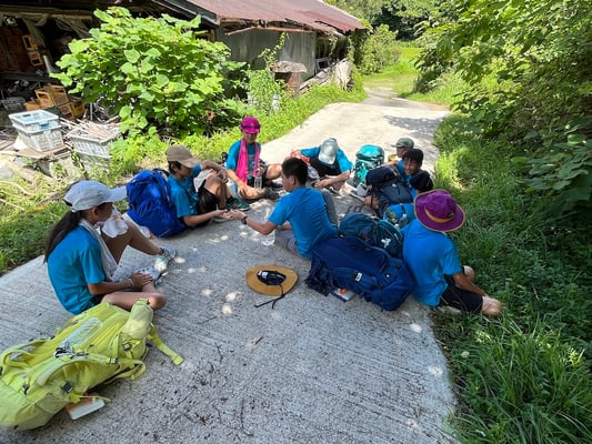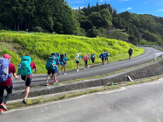 この日の移動距離は、前日よりもわずかに短い24.2km。目的地は次のキャンプ地「サン・ビレッジ曽爾」です。出発前に歩数計が、前日の担当のショウヘイからコウスケに手渡されました。