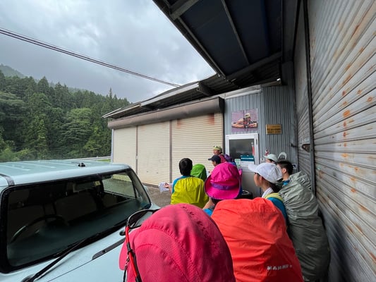 ところが昼食後に様子が一変。再開後にポツポツと雨が降り始め、程なくしてこの4日間でも見たことがなかったほどの猛烈な降りになってしまいました。なぜか我々の頭上だけにピンポイントで雨雲が発生。初日から本当に雨に翻弄されています。