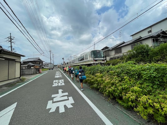 最高の食事の途中に、一日早いお別れの時間が来ました。実はメンバーのミホは所属するチアリーディングの特別練習に参加するため、10日目の行程をもって一足先にゴールとなりました。一緒に京都駅に到達できないのは残念ではありますが、リタイアするわけではありませんし、心は一つです。メンバーたちも一人ひとりがミホと気持ちを同じくし、明日第1ルート最後の行程を歩きます。