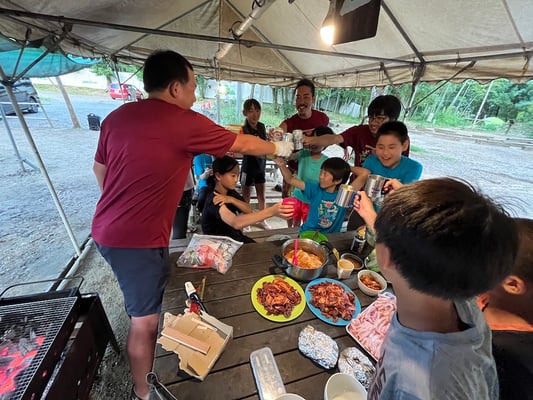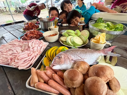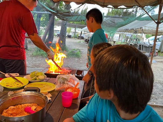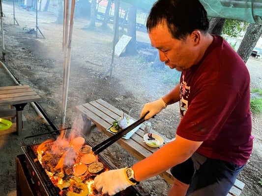 そしてお待ちかね、今夜の夕食はなんとバーベキュー!これまで10日間、全員のことを心から考え、美味しい食事を用意してくれた大ちゃん最後のサプライズです!様々なメニューを、沢山用意してくれましたが、飛ぶように皆んなの胃袋に消えて行きました。