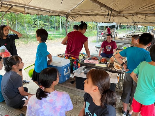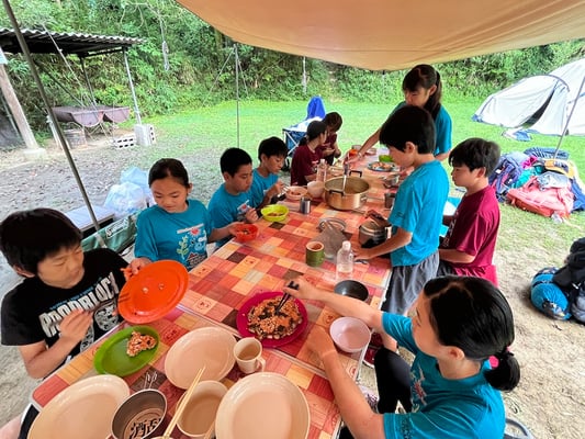 最終日前日となった10日目の朝。前日の休養日に少々夜更かしをしたメンバーたちでしたが、起床時間には元気に起きて来ました。朝食をいただいた後は、いつも通り自分たちの使ったテントの片付け。今日は宿舎泊となるので、もう建てることはありません。8月11日から始まる第2ルートのメンバーたちに気持ち良く使ってもらうため、いつも以上に入念に片付けました。