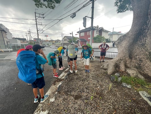昼食後に徒歩行再開。もはや第1ルート恒例とも言える「通り雨」に行手を邪魔されましたが、毎日のように雨に遭遇して来た我々にはもう慣れっこ。15時前この日の目的地に到着しました。