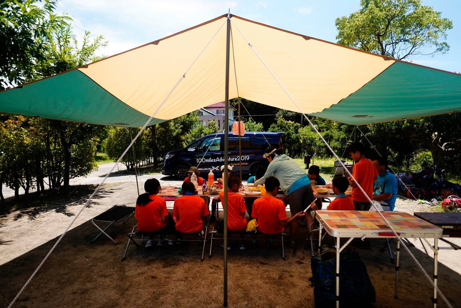 前日一日中降り続いた雨が嘘のように、朝から空は快晴。気温もグングン上がっていくのが分かります。雨露に濡れたテントを芝生で乾かしつつ、スタート地点へ。 本日はいよいよ本土を後にし、瀬戸内海の島々を渡ります。その直前、今年の100milesAdventureの開催にもご協力いただい旅行会社「ひとたび」の南雲さんが合流しました。...