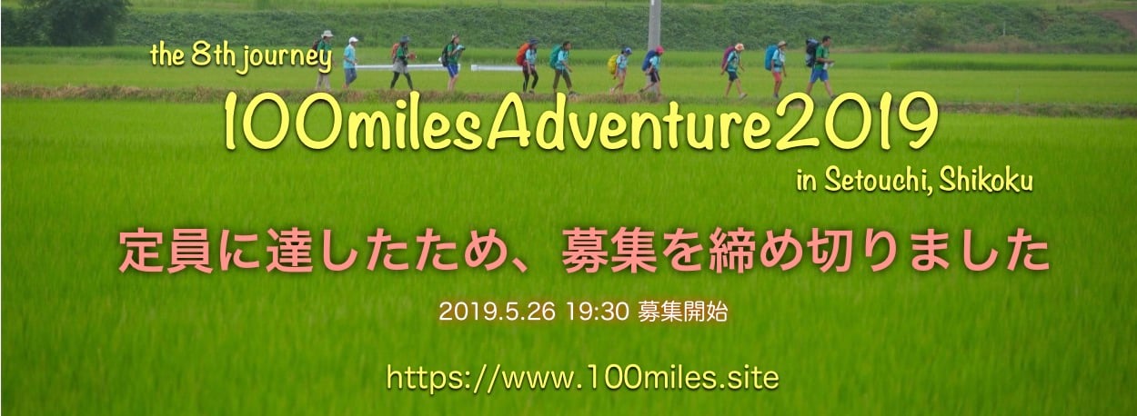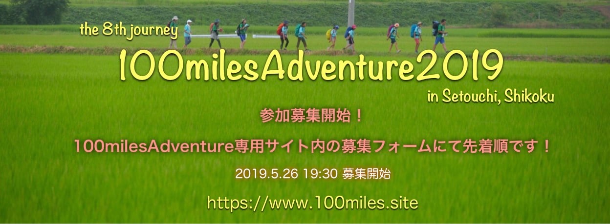 100milesAdventure2019参加募集開始! 大変お待たせいたしました、100milesAdventure2019の参加申込み受付を開始しました! お申込みは専用フォームからのみとなります。